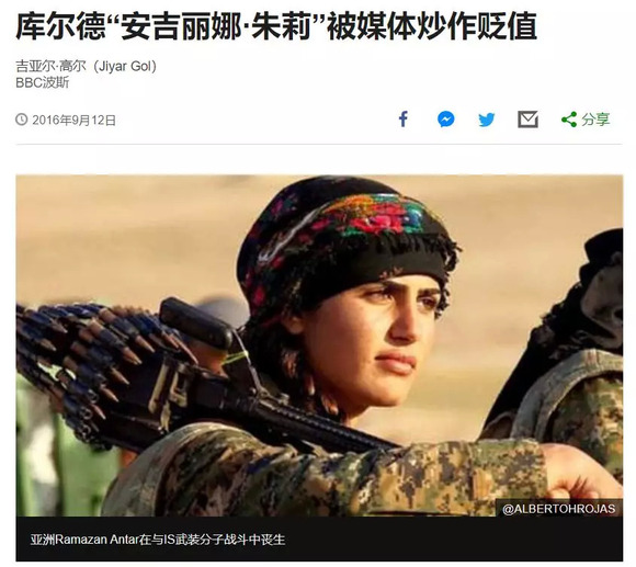 YPJ里有名19岁的战士Asia Ramazan Antar不幸身亡时,媒体却一再强调她的年龄和颜值,没有人在意她过去的赫赫战绩,也没有人在意她渴望和平的理想。