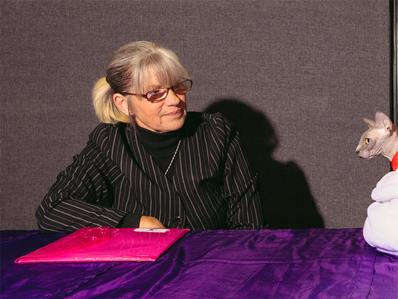 “场馆里的照明条件太糟糕了,所以我自带灯光,由助手(我妈)打理。一整天的时间里,我们走遍了这场活动的每一个角落,寻觅着最醒目的猫咪和主人,”杰克说,“在场的人和猫里,虽然有的人扮相古怪,但大家都无比热情友好。”他的每一个镜头都十分灵动,下一张更不会令你失望。这些毛茸茸的动物霸占着聚光灯——它们当然完全有资格博得人们的眼球,因为这场“猫秀”和英国克鲁夫茨(Crufts)名犬大赛一样,本身就是宝贵的遗产,只有猫中名流和曾经的王者才能参与其中,争奇斗艳。