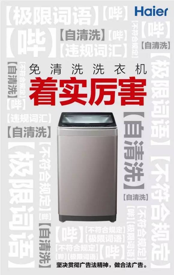 新广告法规定不能再使用极限用语,可就算不能说“国家级、世界级、最佳、第一、最大、顶级、最便宜、最新、首家、最新、全网销量第一、全球首发、全网首发、最新科学、顶尖、最受欢迎、销量冠军、独一无二……”,还是会有别的形容词来代替它们,比如海尔家电的这组海报。