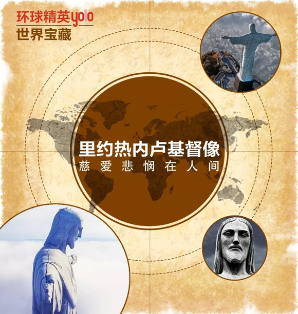 雕像位于里约国家森林公园的科科瓦多山顶,建成于1931年,人像总高38米,如此巨大的耶稣,在设计师的功劳下,张开双臂向世人敞开怀抱,将他的悲悯与慈爱,毫无保留地撒向人间。而这既符合耶稣留给世人的慈爱印象,也代表巴西人们的热情,盛情欢迎世界各国朋友来到巴西。