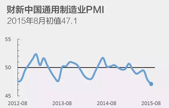 从两个比较权威的PMI走势看,自从2014年年中以来,中国经济开始走低,而8月份财新PMI为47.1%,国家统计局中国制造业PMI为49.7%,均在荣枯线以下,并且是近年来的最低水平。