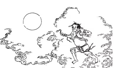 比如“夸父逐日”,便是一则人类直立行走的神话。陶渊明的“夸父诞宏志,乃与日竞走”,根据就在《山海经·大荒北经》所言“夸父不量力,欲追日景,逮之于禺谷”的抱负,还有《山海经·海外北经》称述夸父“渴欲得饮,饮于河渭,河渭不足,北饮大泽。未至,道渴而死,弃其杖,化为邓林”的生命转化传奇。