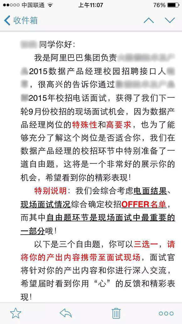 阿里巴巴对像张颖这样中止面试的求职者都是电话道歉并且会为他们准备一份礼物。