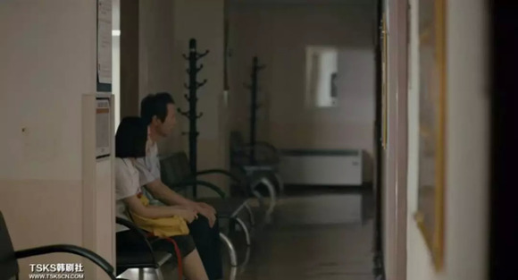 医院的回廊里,父女静坐着。