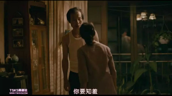 他的施暴场面,片子呈现得相当委婉:从卧室冲到银姬房间,镜头就固定在客厅,观众只能听到轻微的摔打声。