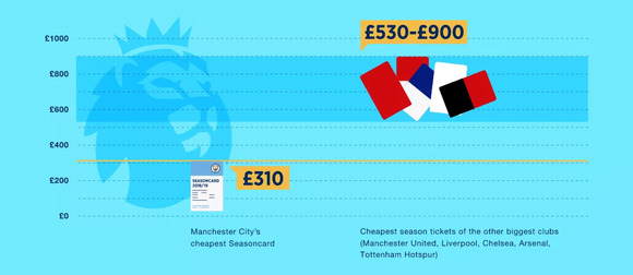 根据曼城的统计,上个赛季容量55097的阿提哈德球场平均上座率为54132人。而曼城的310英镑最低档季票价格,是英超Big6中最便宜的成人季票价格。在球迷对于俱乐部的评价中,也远高于英超标准。随着曼城战绩和影响力的增长,曼城在全球的球迷数也得到大量增长。