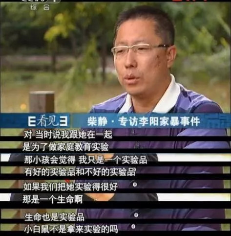 不久,李阳在微博承认家暴一事,紧接着,李阳做客柴静专访,在媒体上公开表示,他与妻子Kim没有感情,与Kim结婚只是为了研究美国家庭教育而作的一个实验,三个女儿只是实验品。