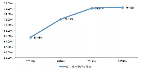 报告显示,金地集团2016年、2017年、2018年、2019年前三季度的资产负债率分别为65.43%、72.13%、76.12%和76.42%,资产负债率呈现逐年走高趋势。