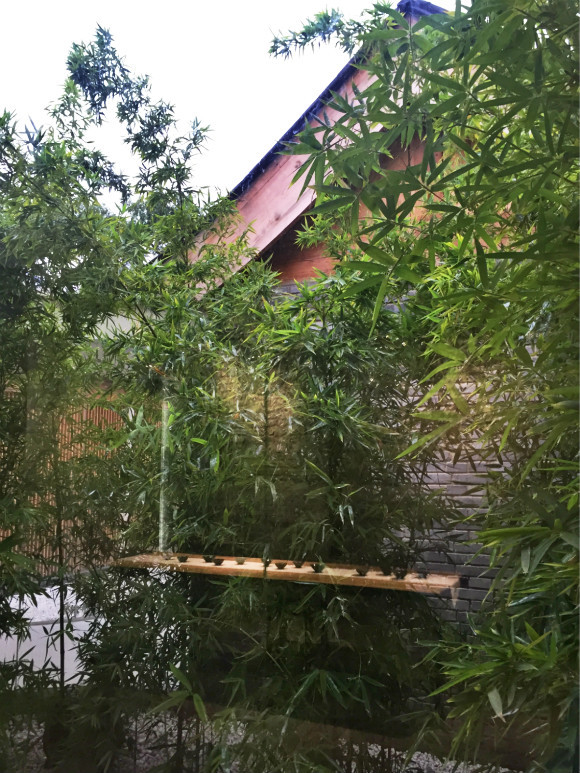 之所以选择竹子,也是有讲究的。茶室的院子面积有限,而竹子茎细,叶片也并不算浓密,这样搭配,能够为有限的空间留白。同时,竹子是在北京易于成活的植物之一。