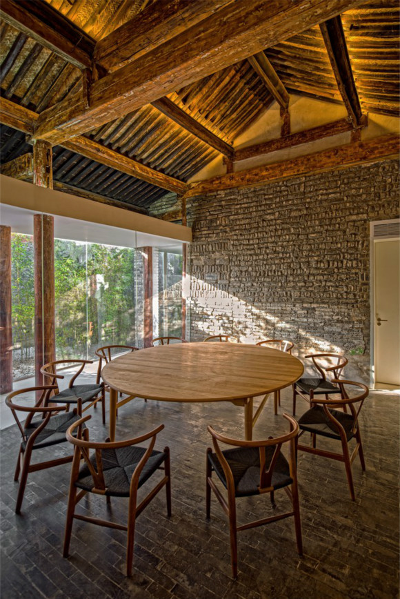 负责改造这个胡同旧院的是北京建筑营Archstudio工作室,在做水墨轩茶室之前,建筑营已经做过东城区辛寺胡同的居住宅子改造和另一处三合院的办公改造。可以看出,水墨轩中留有建筑营一贯的风格:尊重原有材料,并且重视人和自然的互动。