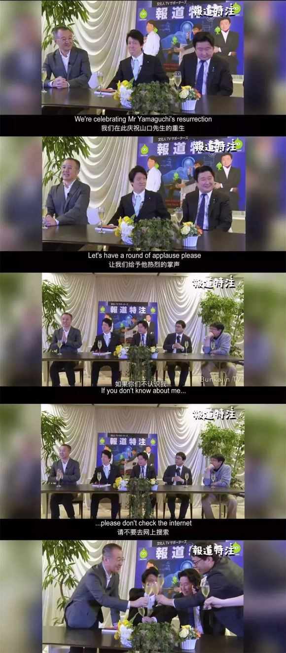 得知不会被起诉之后,山口敬之在电视节目上,与一帮同侪举起了香槟庆祝。这些油腻腻的中年老男人眉开眼笑地说: