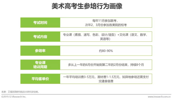 全国每年60万美术高考生,培训周期8个月,花费4-6万/年