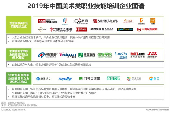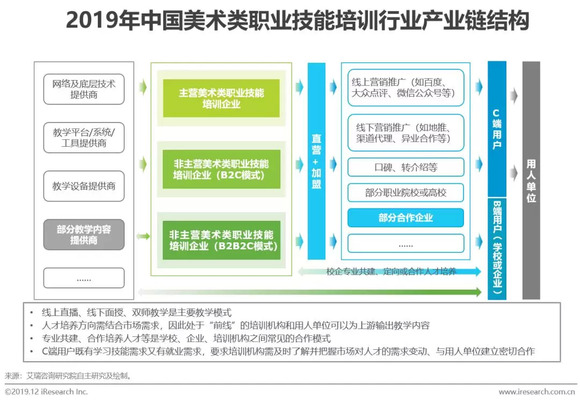 美术类职业技能培训市场:培训内容与就业市场热点密切相关,产业链上下游间相互作用明显,合作紧密,界限模糊,企业跨赛道竞争激烈。