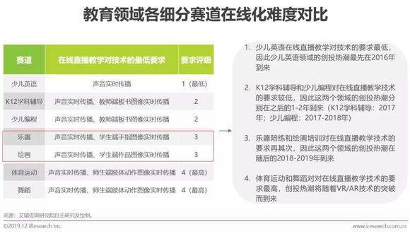 在线美术难度高于在线英语/K12/编程,发展阶段滞后1-2年