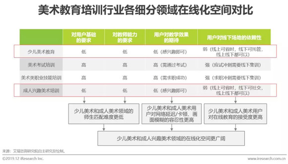 在线美术-内部各细分领域对比