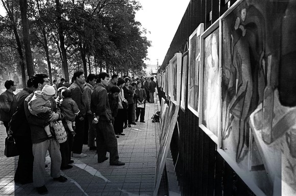1979年9月27日,北京市民在中国美术馆东侧街头公园看到了一个不同寻常的展览:很多画挂在铁栅栏上,有些挂在树上,还有一些木雕就放在地上。参展的画家们站在自己作品的面前,接受来自观众的提问。其中一件叫 《沉默》的木雕后来被美术评论家当作这场展览的标志性作品。作品表现了一个人的痛苦——眼被遮挡,嘴被封住,不能自由看,也不能自由言说。这个作品的作者王克平,连法国著名画家马蒂斯的名字都没听说过。