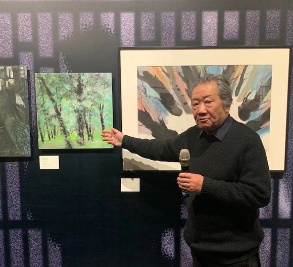 每一件作品是带有思想的,有灵魂,不是为了画而画。我在河南(经历)知识分子劳动改造以后,当时思想在开放,我想自己在从事艺术道路上能不能有所突破,大胆地去画,把思想表达出来。我之前也一直在追求自己的艺术,可是那个空间里不能画画,所以我从干校回来之后,就和黄锐等人成为了朋友。这幅画周围都是森林,前面一个野猪,说明我需要冲破这个空间,在更大的空间展示我自己,释放我的艺术思想。我就把这个思维和我在生活里看到的景观融为一体。从绘画技巧来说,我认为中国画有很大潜力,把水墨画和西洋风格结合起来,所以画面里只留了一点空白,表达了我中国画的思想。当时觉得还行,就毫无顾忌地拿去展览了。那时候,大家的思想是一致的,就是要冲破禁锢。