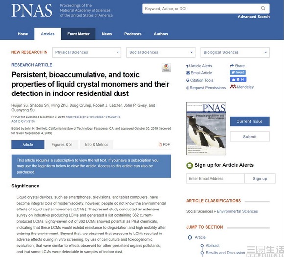 根据发表在《美国国家科学院学报》上的文章摘要可知,在分析了市面上主流的362种液晶单体材料之后,研究团队发现,其中87种表现为难以降解和高迁移率的能力,这意味着它们一旦泄漏到环境中便会长时间存在,而且很容易被生物或者其他物体沾染甚至是吸收,这几乎就满足了持久性和生物蓄积性(P&B)化学物质的定义。