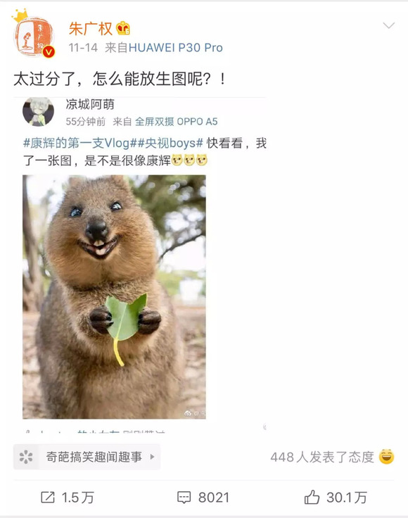 这条微博随后被朱广权转发,「太过分了,怎么能放生图呢?!」