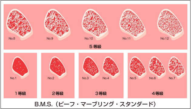 就在短短十几年间,日本完善了牛肉等级标准和培育标准,其细致程度让师傅美国都叹为观止。USDA(美国农业部)把牛肉品质分为8级,最好的三个级别(PRIME, CHOICE, SELECT)是生吃或者做牛排的;中间三个级别(Standard, Commercial, Utility)一般是炖、烩或者做成肉饼夹汉堡的;最差的两个级别(Cutter, Canner)大多用来喂狗。