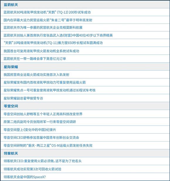 虽已经过近5年发展,但相比备受瞩目、作为国家象征的国有航天而言,民营航天实际上处于非公众关注范围。或者说,在绝大多数公众头脑中,并没有民营航天的概念。因此在对境内主流媒体及媒体平台的分析中可以看到,信息源头或者为企业自己的社交媒体账号,或者来自国有媒体和财经(行业)媒体,而其他机构、个人发布的相关信息也基本来自后者。