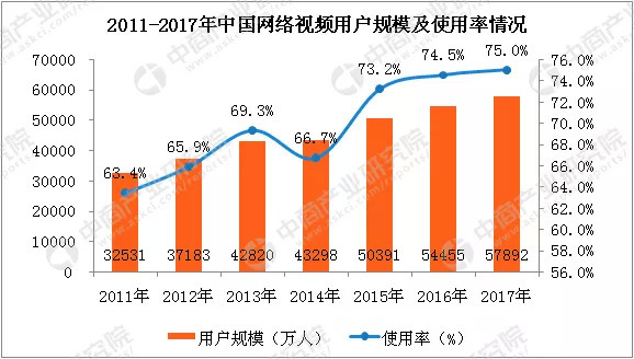 2017年被视为视频网站付费会员高速增长期。根据CNNIC第41次《中国互联网络发展状况统计报告》显示,截至2017年12月,中国网络视频用户达到5.79亿人,其中视频网站付费会员总数超过1.7亿。