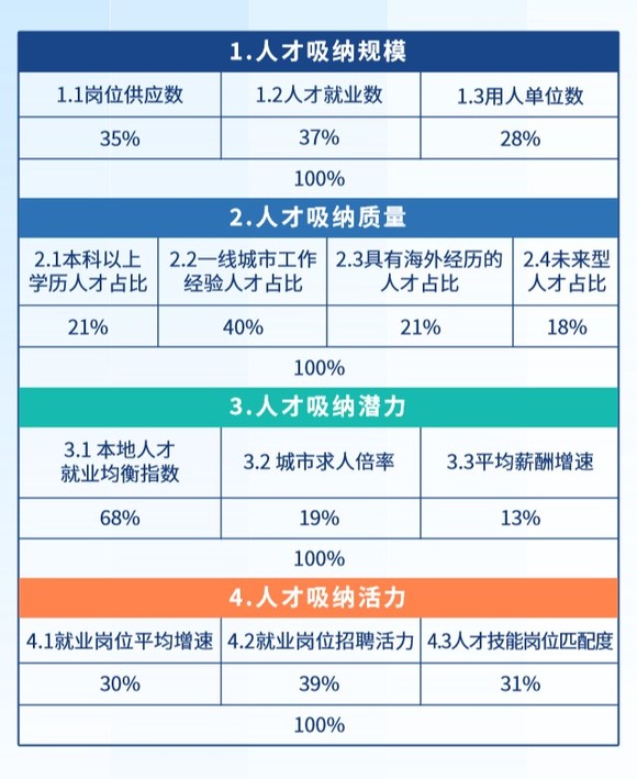 “人口净流入规模大和人才吸纳效果好并不能划上等号,人口流入仅仅是第一步,如何让人才在当地安居乐业才是关键。”钱明辉指出,“人才品牌吸纳度研究的四个二级指标和13个三级指标,可以在一定程度上揭示各城市在吸纳人才方面存在的短板,有助于各城市政府精准施政,采取有针对性的措施增强城市人才吸纳能力。”