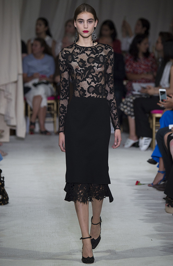 继承者可不好当,在首秀得到好评之后,Peter Copping似乎压力更大,在这场发布会上展出了多件混合西班牙风格和拉丁印花的裙装,华丽还是那样,不过已经比2015秋冬多了些个人的色彩。