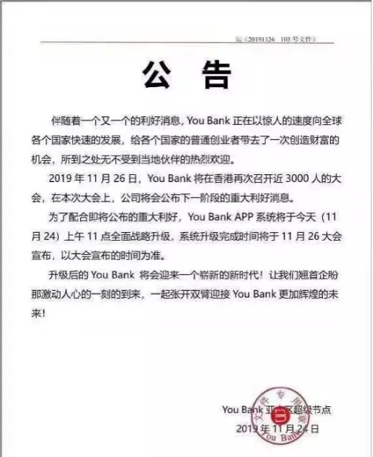 Youbank公告