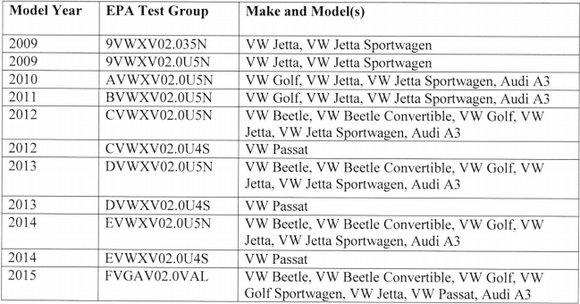 美国环保署称,大众及奥迪品牌在2009-2015年生产的部分柴油发动机车型上使用非法软件,试图在尾气排放测试中逃避环保署制定的清洁空气排放标准。涉事车型包括2009-2015年生产的大众捷达、高尔夫、甲壳虫和奥迪A3以及2014-2015年生产的大众帕萨特。