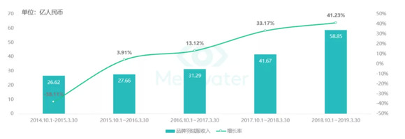 波司登在2018年~2019年的销售高峰期间的品牌羽绒服(包括雪中飞)销售收入达到58.85亿元人民币,同比上涨41.23%,为近5年最大涨幅。