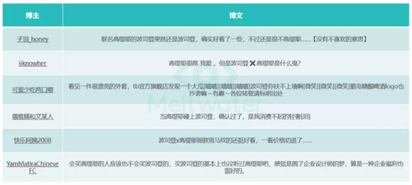 从活动数据上看,传播主要为KOL以及明星发文触发的转发微博。消费者对波司登 X 高缇耶系列的主动讨论较少,最终体现为该系列的天猫销量并不高。