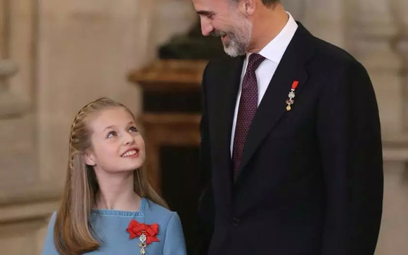 2018年1月30日,是西班牙国王费利佩六世的50岁生日大寿,可生日宴会的主角却不是他,而是他12岁的小女儿——莱昂诺尔公主(Leonor)。这天,莱昂诺尔公主在马德里皇宫被皇父授予了一枚历史悠久象征着王室最尊贵地位的金羊毛骑士团勋章。