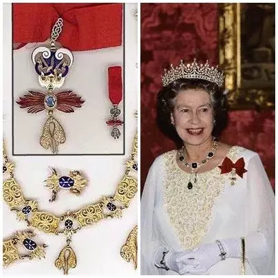 ▲佩戴金羊毛骑士团勋章的伊丽莎白二世