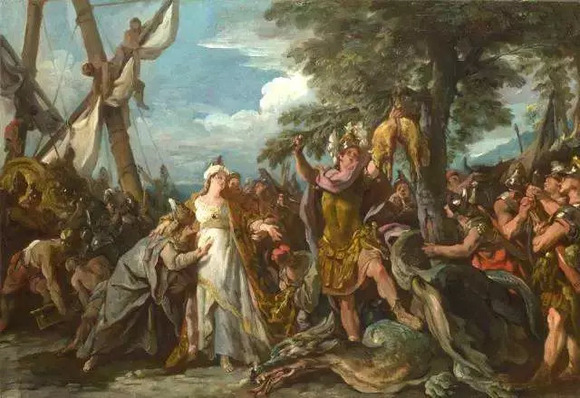 在雅典娜的帮助下,阿耳戈英雄们历尽万苦到达目的地,却没有办法从火龙身边拿到金羊毛,而这时,中了丘比特之箭的痴心公主美狄亚为了爱情背叛了父亲埃厄忒斯,帮助伊阿宋拿到了金羊毛。