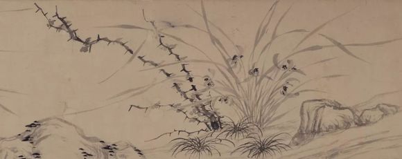 在中国绘画史上,墨兰独立成画,文字记载始见于苏轼的《题杨次公春兰》:“丹青写真色,欲补《离骚》传。”可惜此图不传。现存古画中的墨兰始见于郑思肖与赵孟坚,李渔在(康熙)《芥子园画传·兰谱》中即说:“画墨兰自郑所南、赵彝斋(赵孟坚号彝斋,元代著名画家赵孟頫堂兄,入元后隐居不仕)、管仲姬(管道升字仲姬,赵孟頫夫人)后,相继而起者,代不乏人。”比较而言,郑思肖所绘墨兰,用笔极简,疏花简叶,兰叶短促有力,而花仅一朵,画面空灵别致。郑思肖又下笔果断,用短笔直写春兰初发之意,点到即止,显示了极深的功力,因此不便于临习。而赵孟坚用笔较多,兰叶绵长柔韧,描绘的是蕙兰盛放之形,斜笔亦可补救,相对易于临摹。《芥子园画传》中仅有《拟郑所南笔意》一图,但与郑思肖传世的墨兰差异甚大,可知模仿不易。郑思肖画的墨兰无土,这又是一个特点。据《宋遗民录》称:“不画土,人询之,则曰:‘一片中国地,为夷狄所得,吾忍画耶?’ ”表明“根不著土”的墨兰不仅别出心裁,更有深意。还要说明的是,古人往往引入字法作画,郑思肖《墨兰图》的兰叶形态,所用的构思正是早期篆籀的“心”字。故与其说“画兰”,不若说是“写心”,这就难免有些费解,倒像是一个哑谜。元代同居苏州的韩奕应该看过郑思肖画的墨兰,曾写《郑所南画兰》诗,其中有“洒泪写《离骚》,咄咄如书空。疏花缀简叶,孤生不成丛。倏然数笔间,遗恨自无穷”之句,可谓知心之见,也可见其画之可贵。