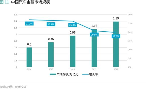 2017年我国汽车消费金融市场规模已经突破万亿元,2018年市场规模达到1.39万亿元,同比增长19.8%。随着中国汽车金融市场的逐渐开放与征信系统的完善,融资租赁公司、互联网金融公司、互联网保险公司开始入局,市场规模进一步扩大。根据中国银行业协会汽车金融专业委员会发布的报告显示,截至2018年末,我国汽车金融总体渗透率在48%以上,相比美国等发达国家70%以上的渗透率,我国汽车消费贷款规模未来仍有成长空间。