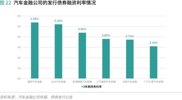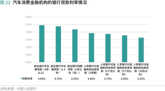 因此,商业银行由于资金量最充足,资金成本最低,资金能力最强。汽车金融公司的资金来源主要是银行贷款(占到50%以上)、发行债券,银行贷款期限一般在1年期以内,债券期限一般为3年期。汽车金融公司的总体资金成本高于银行,资金供给量低于银行,资金成本容易受到政策环境和利率水平波动的影响,融资困境始终存在。目前非持牌机构的资金基本来自持牌机构,银行资金成为绝对主导。汽车融资租赁公司、第三方汽车金融服务公司获取资金成本高,因此资金能力整体较弱。
