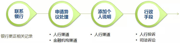 根据《征信管理条例》,当客户(信息主体)对于征信信息存在错误或遗漏的时候,可以向征信机构(人民银行)或者信息提供者(一般为某信息采集的银行)提出异议,并在征信报告中添加异议声明。