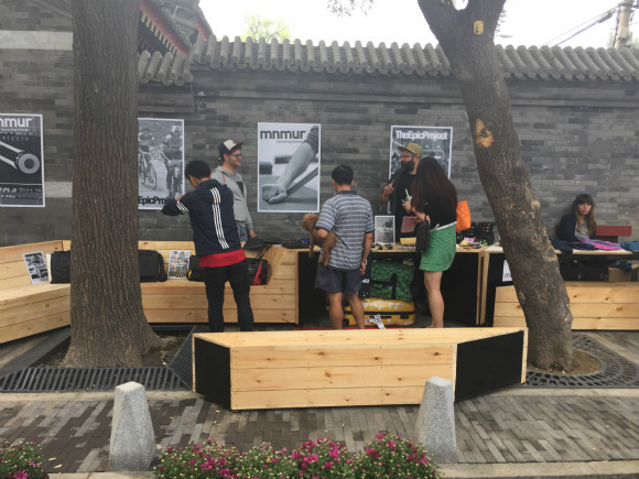 平日里如非这些白领,白塔寺一带和热闹根本沾不上边。但9月24日,第一次加入北京国际设计周就作为主展场的白塔寺展区开展,宁静悉数被打破。胡同里,贩卖鞋子、装置艺术品、模型、手机壳等各类创意小物的市集挤满了狭窄的道路,年轻的中国摊主和外国摊主相互交谈着,有时还会忽略前来问津的客人。英国V&A设计博物馆的来客和巴塞罗那来的城市专家在街旁举办着讲座,认真的年轻人们低头速记着。