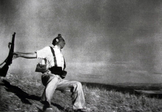 人们认为这充满力量的一幕是在西班牙内战时期于Cerro Muriano拍摄到的。然而在战争过去多年以后,历史学家发现这张叫做《倒下的士兵》(Falling Soldier)的著名照片问题重重。首先,根据加西亚战友们的说法,他是在躲藏在一棵树后面时被击中的,而不是像照片上那样在空地上被打死的。其次,这名不幸的步枪手的长相据说与照片里的人相差很大。