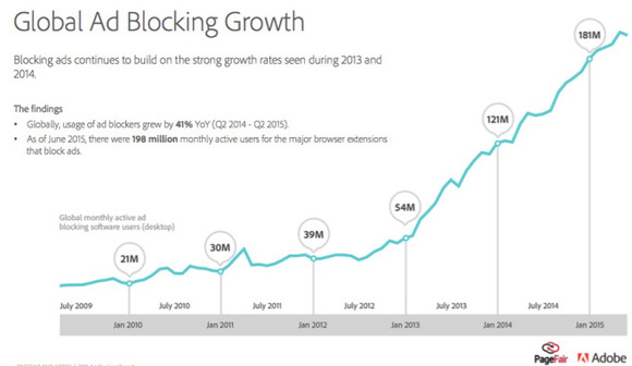 对于用户来说,广告屏蔽软件能显著提升网络体验,一键拦截那些挂在网页上乱七八糟的广告和弹窗,浏览视频的时候也不必忍受几十秒的广告,加载速度大大提高,还能节省不少流量。想知道用户对广告屏蔽软件有多热衷,看使用数据就知道了:帮助网站检测广告屏蔽的公司PageFair和Adebe在今年8月联合发布的报告显示,全球使用广告屏蔽的用户年增长率为41%,每月的活跃用户为1.98亿。