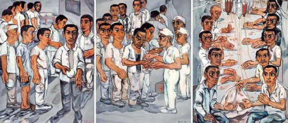 《协和医院系列之三》是1992年曾梵志刚从湖北美术学院毕业时的作品。三联画反映出了他从学生到成(商)熟(业)艺术家的过渡。