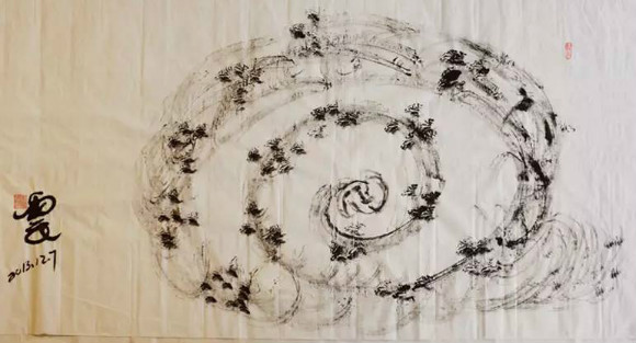 这幅在练字时由于被挠痒而产生的作品引起了大家的围观。
