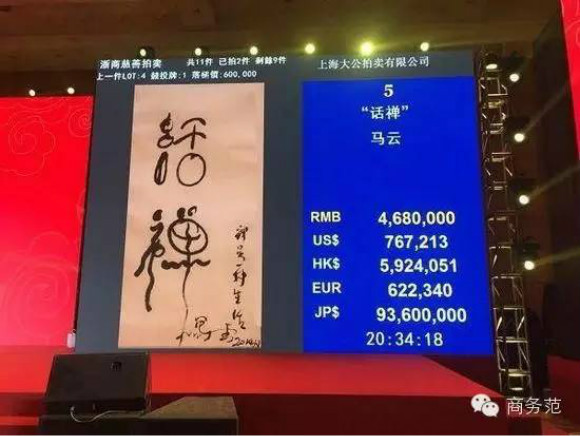 鉴于马云的“知名艺术家”身份,这幅字不负众望,以468万成功拍卖。
