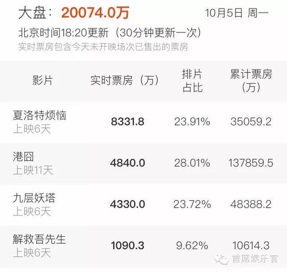 国庆档的票房之战愈演愈烈。先是9月25日,《港囧》上映首日就刷新12项纪录;接着是9月31日,陆川首部转型之作《九层妖塔》首日报收9200万,以200万的优势赶超《港囧》,不过在第二天《九层妖塔》的数据就开始下滑,再次被《港囧》反超;而一开始不被看好的《夏洛特烦恼》随着口碑发酵,排片和票房均出现逆天的反向增长,现已超越《港囧》成为新的单日票房冠军,有业内人士预测其最终票房将达10亿左右,成为《大圣归来》之后的又一匹黑马。