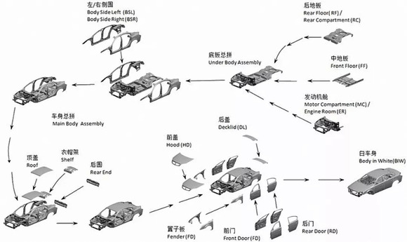 马斯克没有明确所指的「70个零件」是哪些?按通常理解,白车身涉及到的关键总成零部件有如下这些。