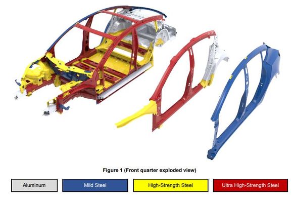大家可以看看Model 3的侧围拆解图,蓝色的部分就属于侧围外板,Model Y和它类似。