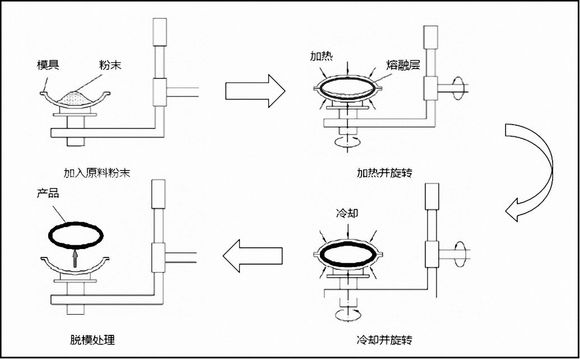 这项技术现今主要使用在低速车型中,它的做法是将原料颗粒加入到特定模具中,模具会沿着轴不断旋转、加热,模具内的塑料在重力和热能作用下,均匀地涂布、熔融粘附于模腔的整个表面上,成型为所需要的形状,再经过冷却定形,脱模等工序后获得一体成型制品。