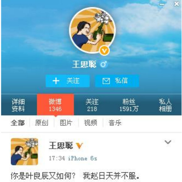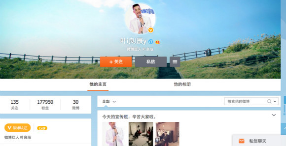 而在9月28,一个自称是叶良辰本尊的微博账号出现了,而且还加了大V,左边的信息栏甚至写着工作联系邮箱和以及他的本名——吴博伟。